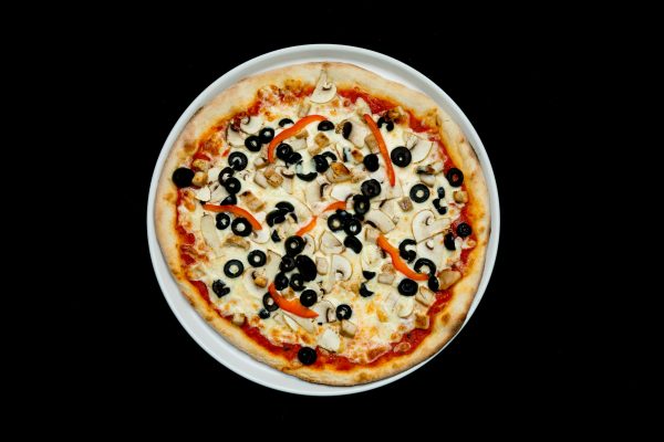 Sos pizza, mozzarella, piept de pui, ciuperci, ardei, masline.